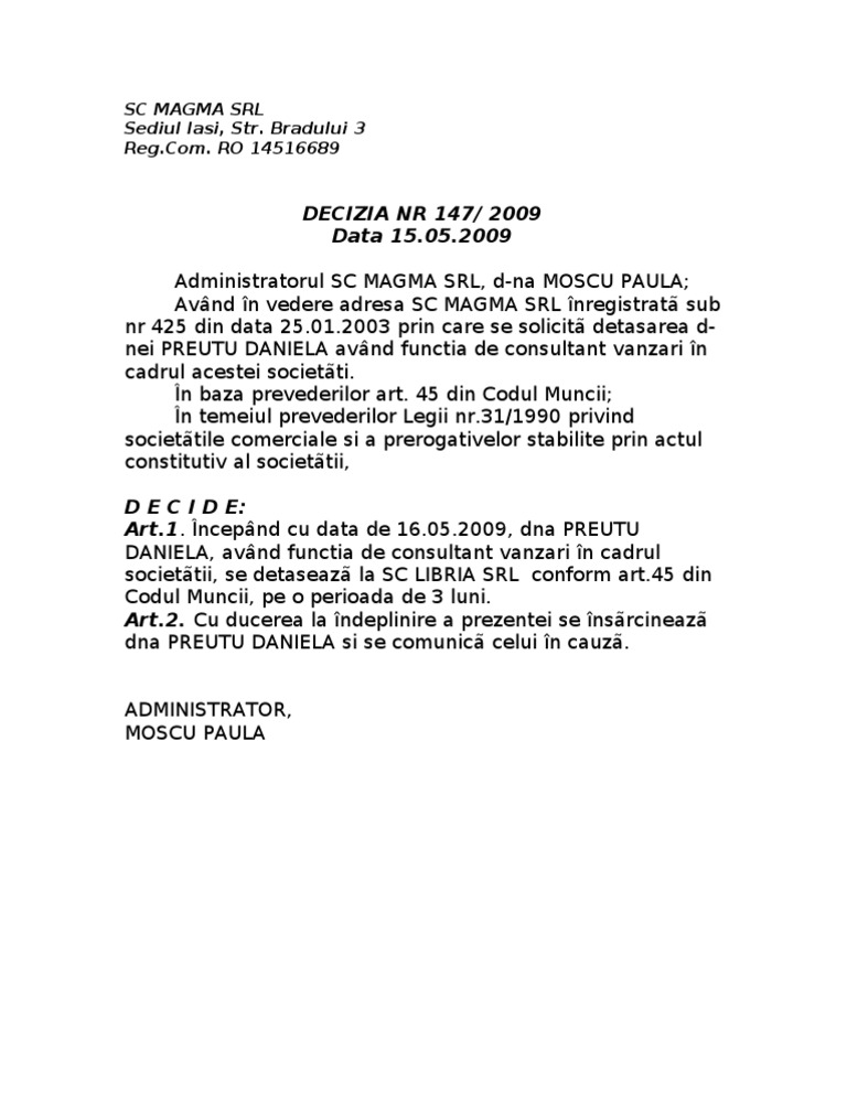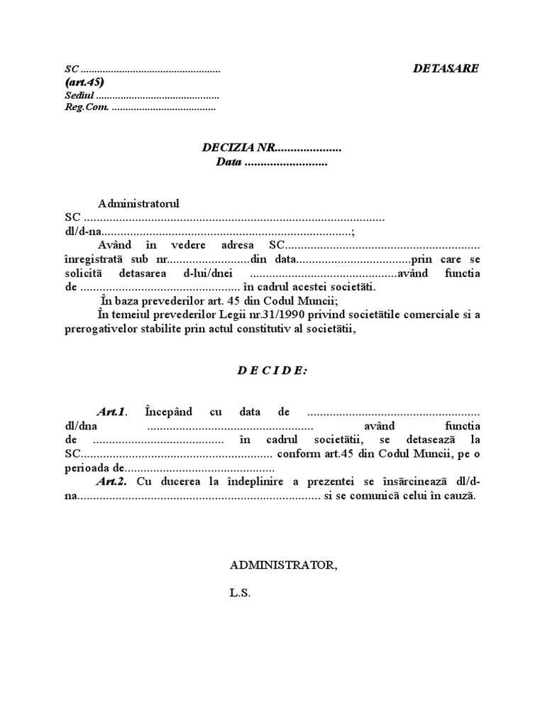 Decizie Detasare Formular Word Formulare Tipizate Gratuite