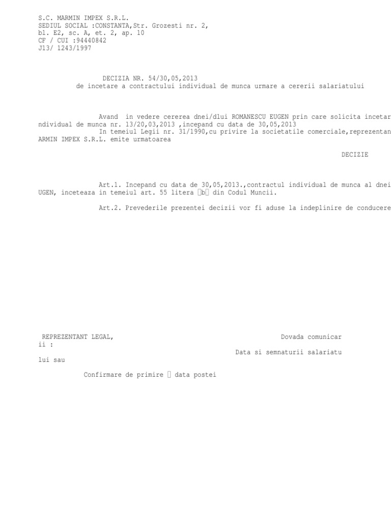 declaratie pentru scoaterea din evidenta a mijloacelor de transport model completat