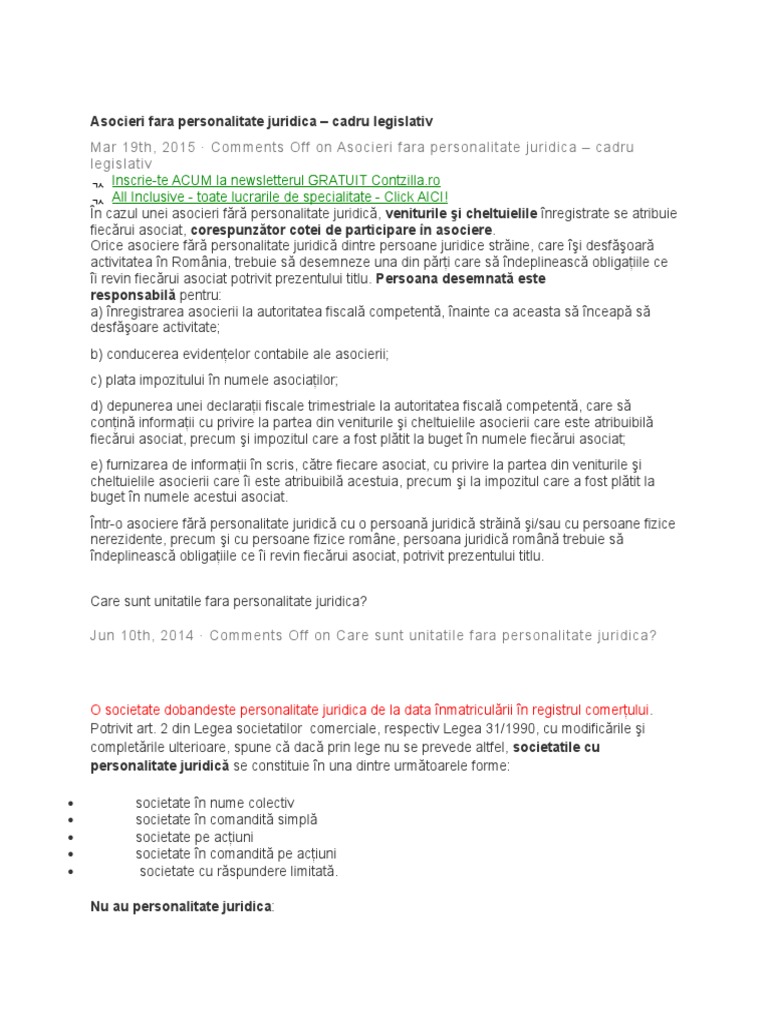Asocieri și Alte Entități Fără Personalitate Juridică Taxnews