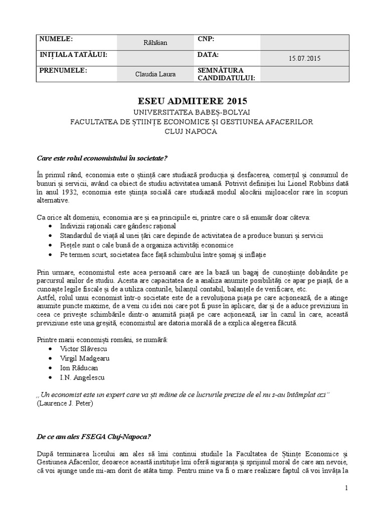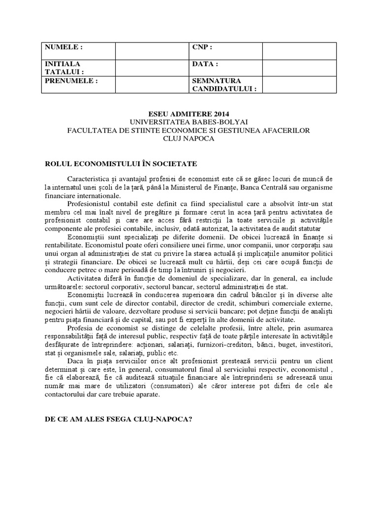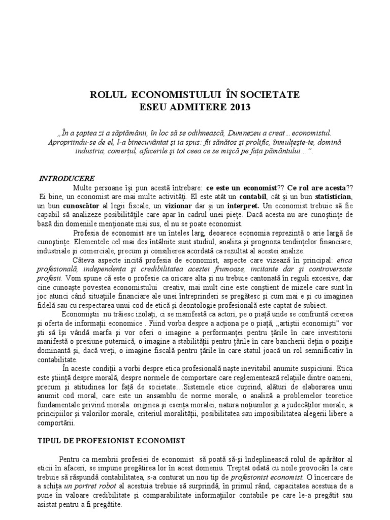 Admitere 2018 2019 Licenţă Eseu Motivaţional Care Este Rolul Economistului In Societate