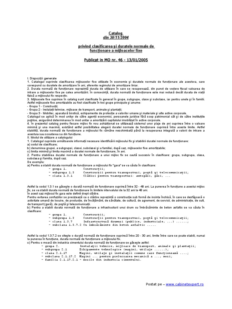 Hg 2139 2004 Catalogul Privind Clasificarea Si Duratele Normale De Functionare A Mijloacelor Fixe Cfnet Codfiscal Net Finante Taxe