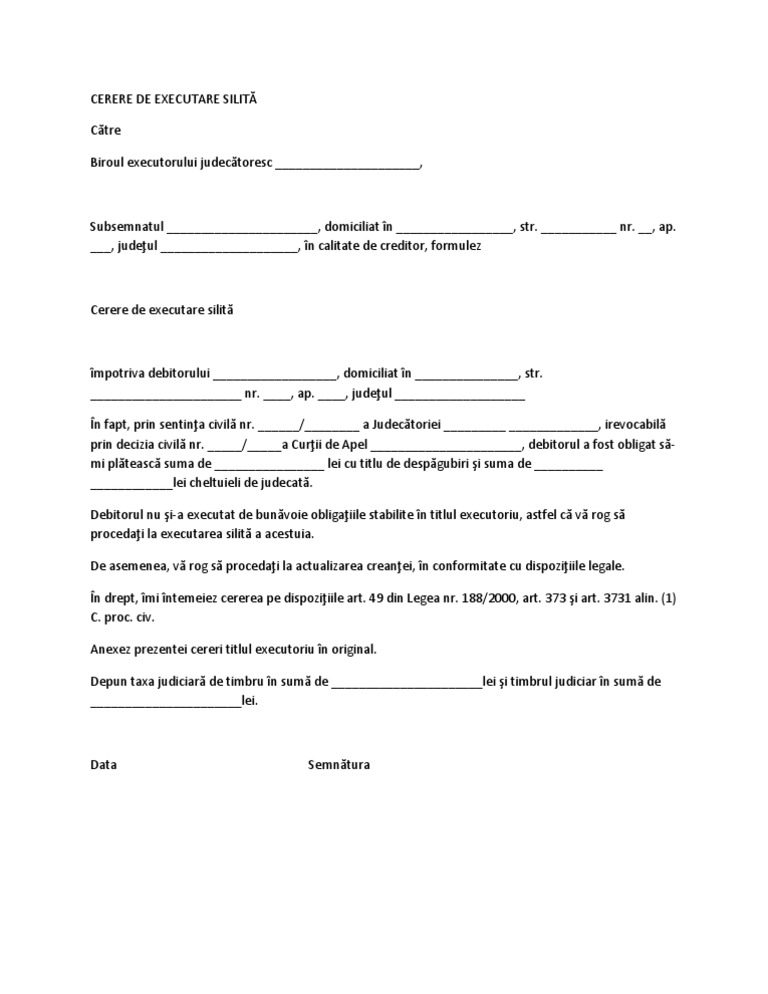 Http Www Executoralba Ro Fisiere Model Cerere Executare Prin Toate Modalitatile Pdf