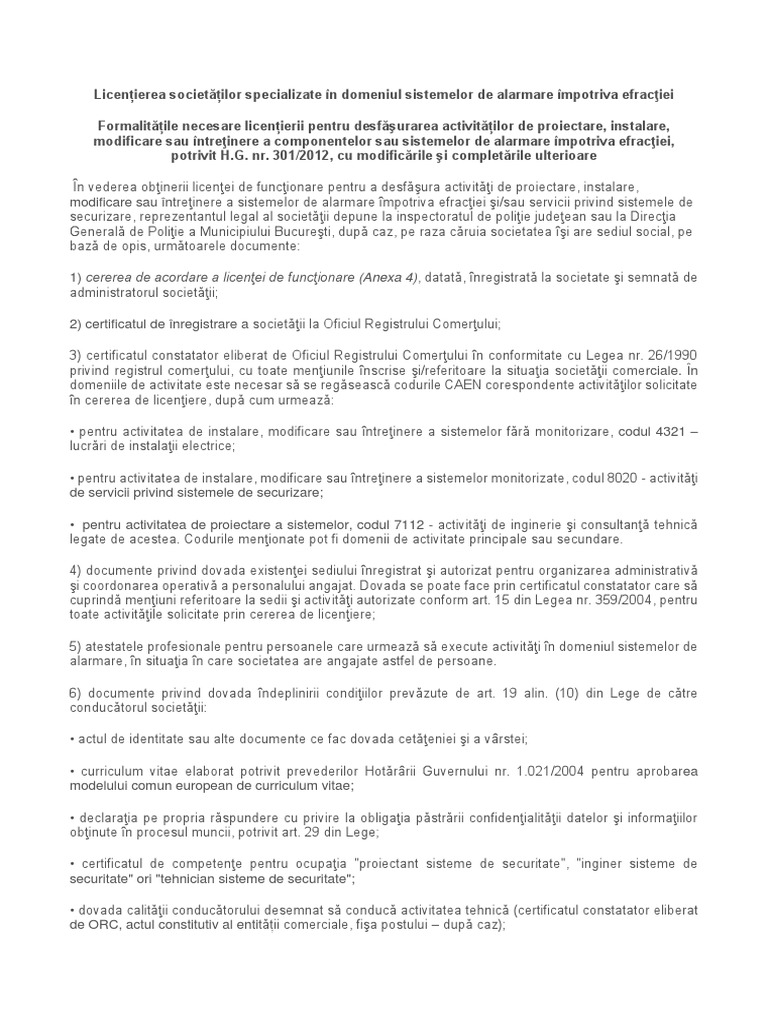 Licențierea Societăților Specializate In Domeniul Sistemelor De Alarmare Impotriva Efracţiei Docx