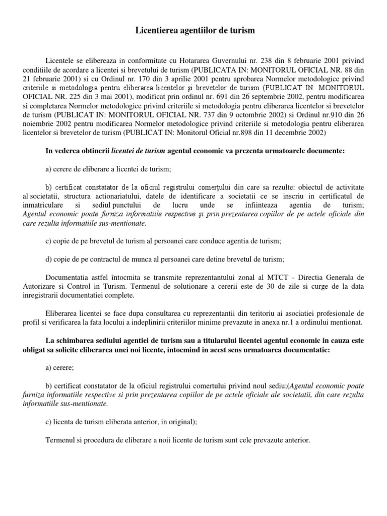 Licentierea Agentiilor De Turism
