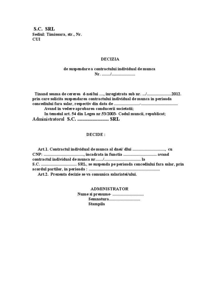 Contract Individual De Munca Titlul Ii Codul Muncii Art 10 Art 110