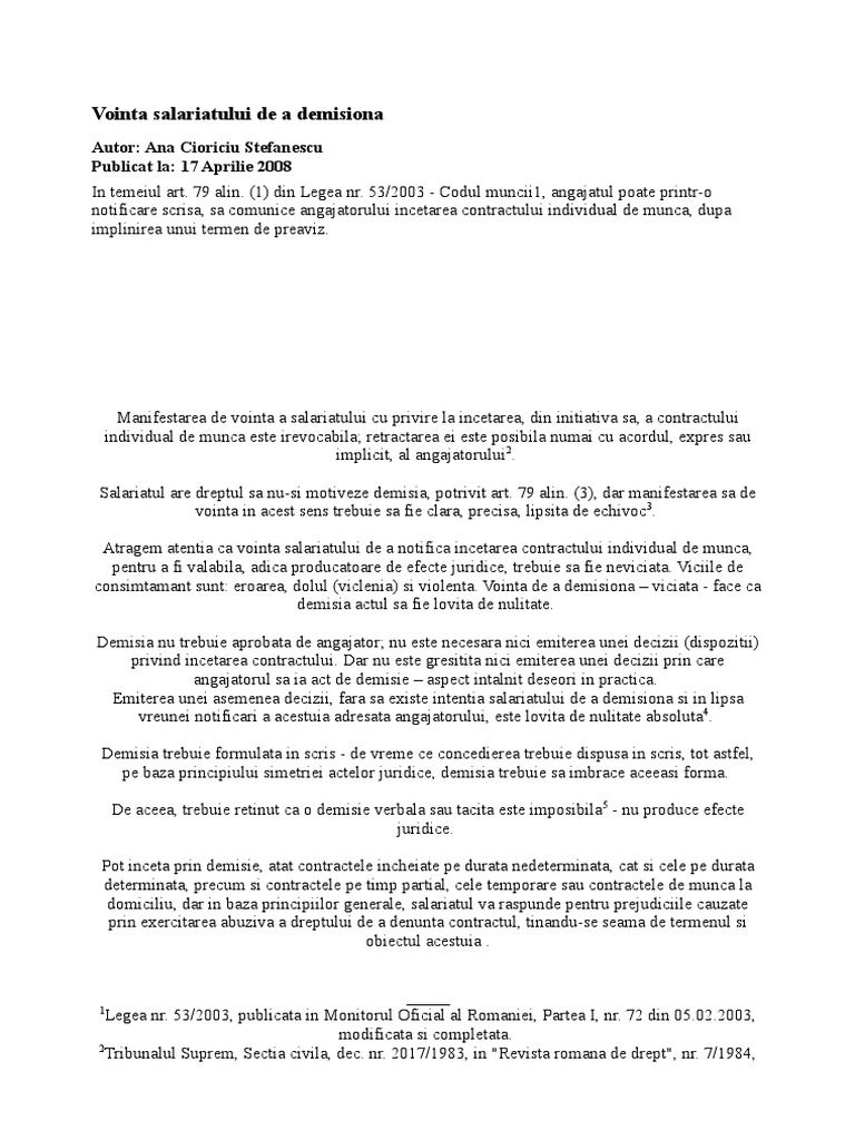 Art 79 Demisia Codul Muncii Lege5 Ro