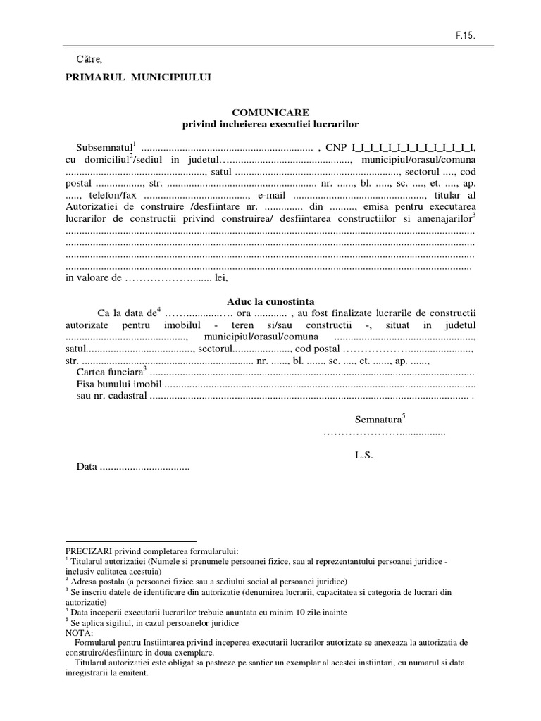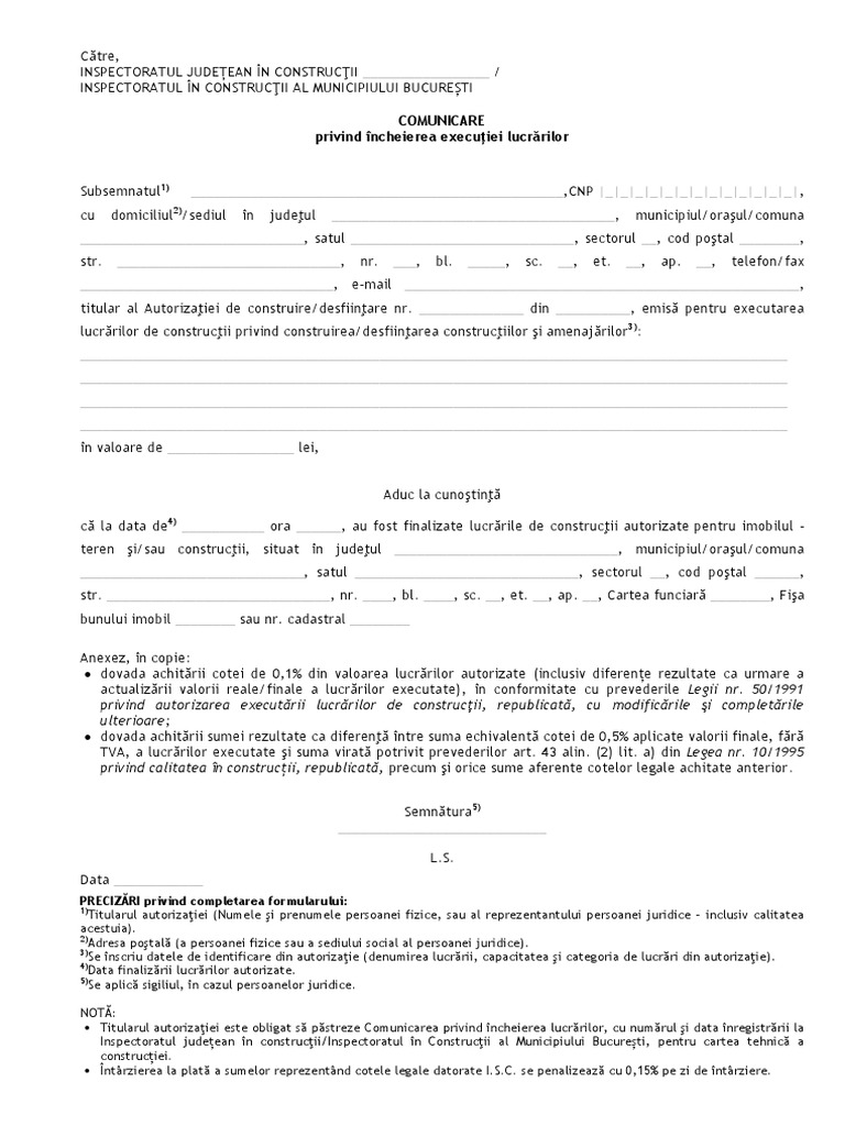 Instiintare Finalizare Lucrari Autorizate Pdf
