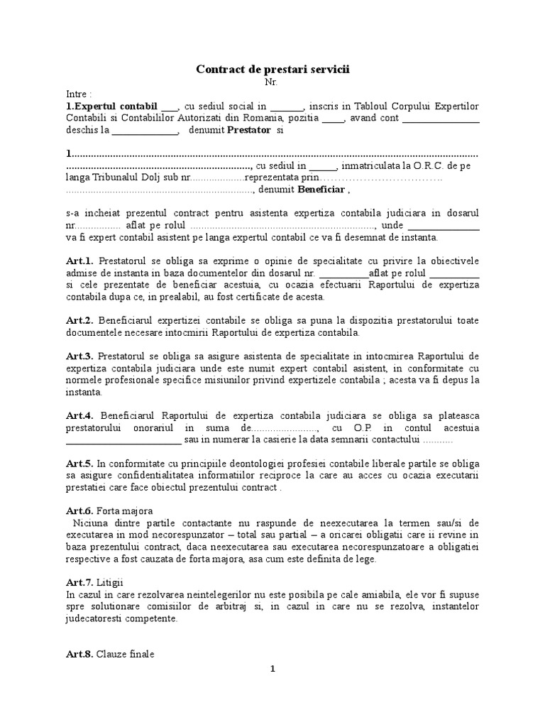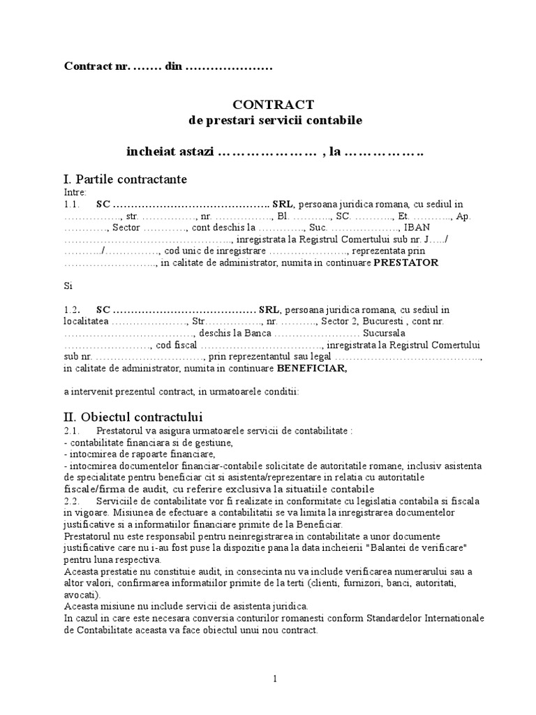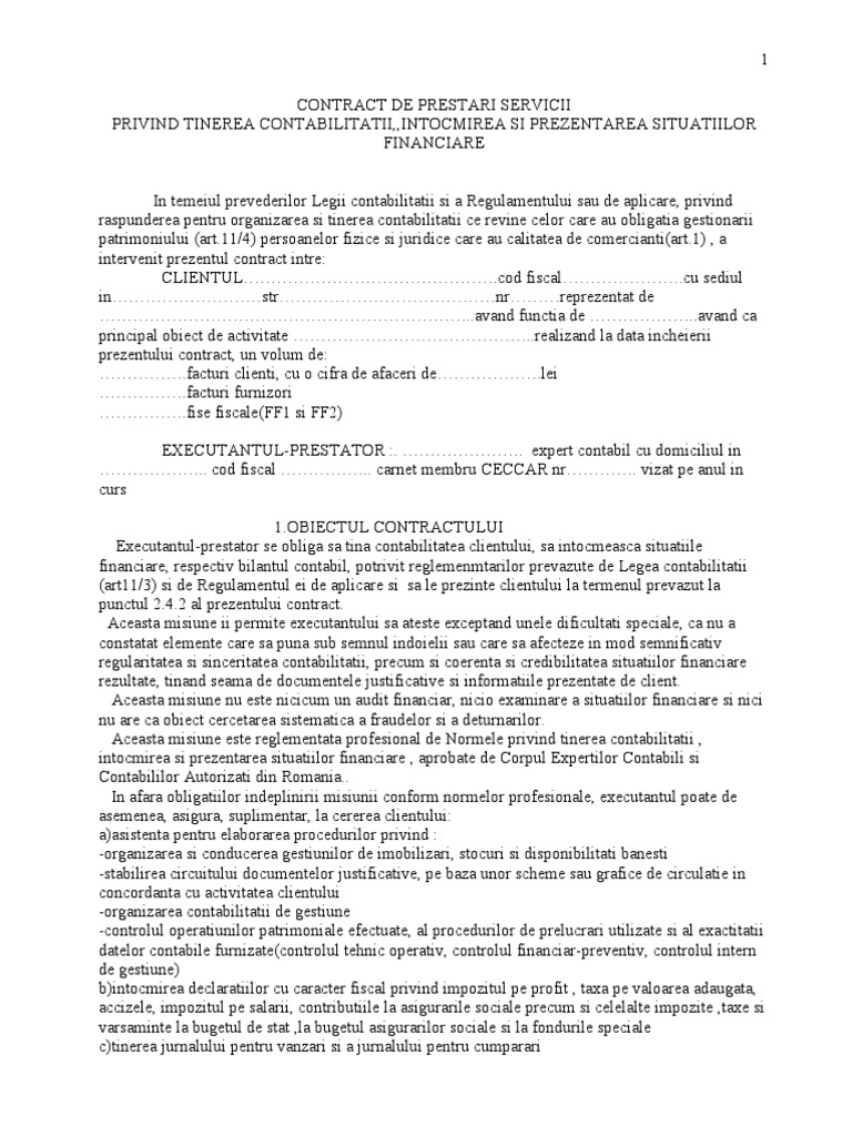 Model Contract De Prestări Servicii Contabilitate Si Resurse Umane