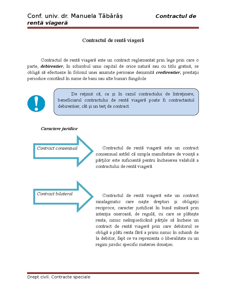 Contractele Speciale Ale Dreptului Civil Contractul De Renta Viagera