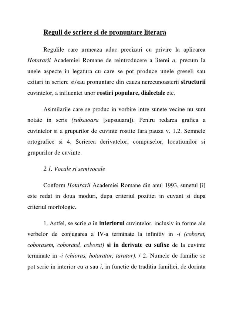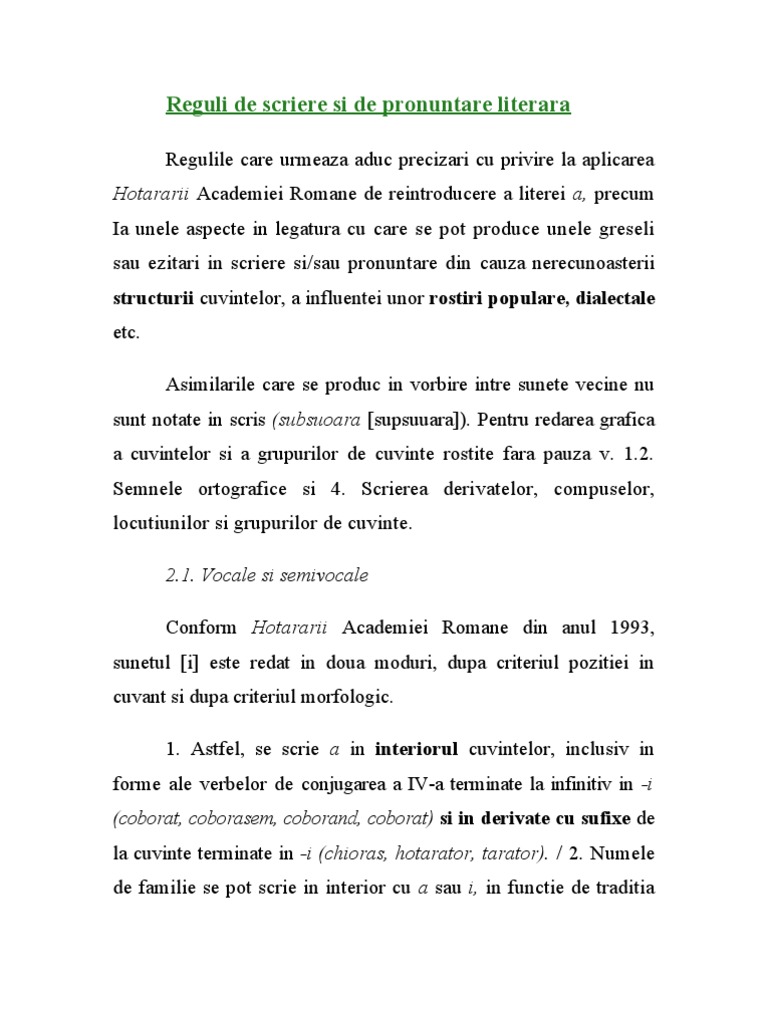 Reguli De Scriere Si De Pronuntare Literara