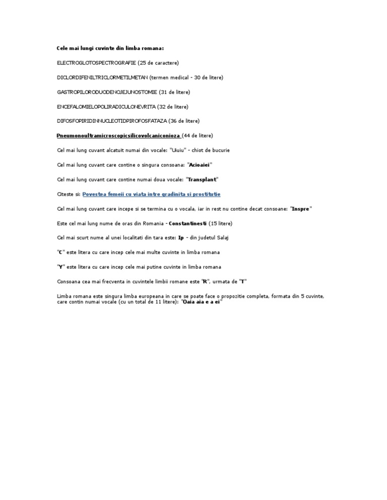 Cele Mai Lungi Cuvinte Din Lb Romana