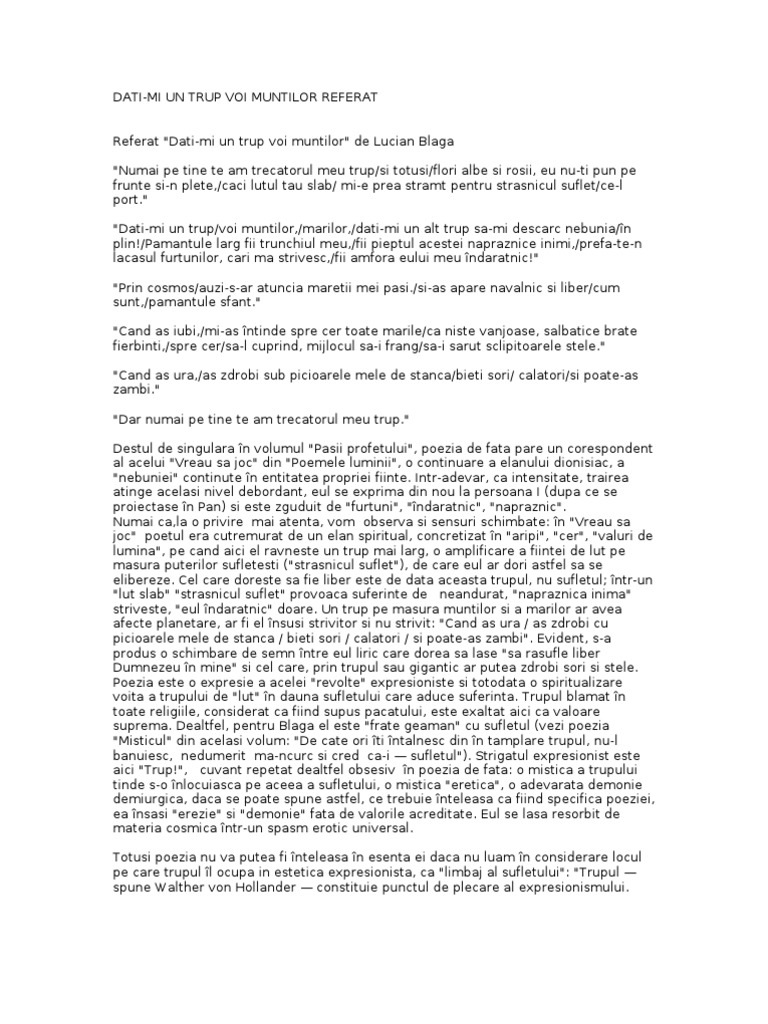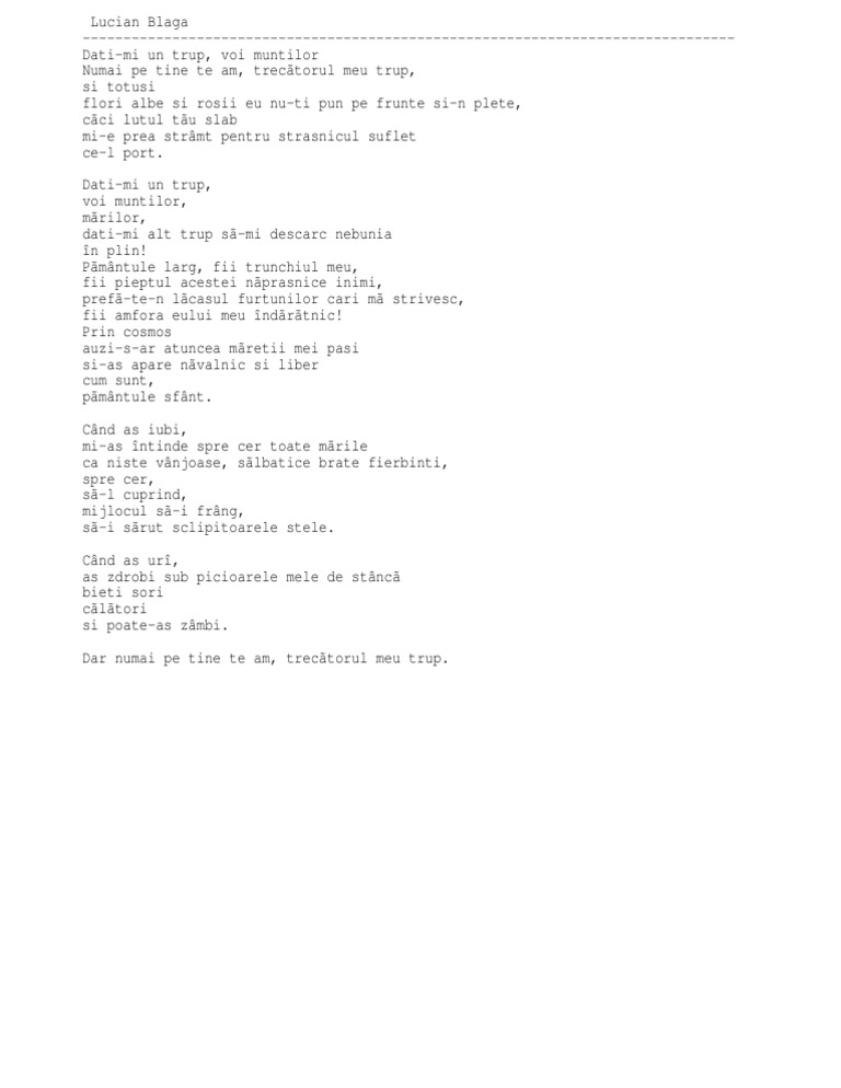 Lucian Blaga Dati Mi Trup Voi Muntilor