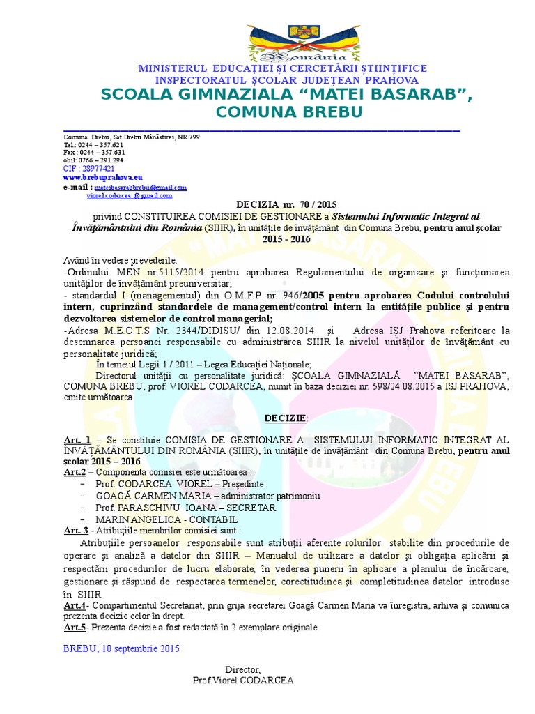 Documente Manageriale Scoala Gimnaziala Nr 1 Dumbrava Rosie Neamt