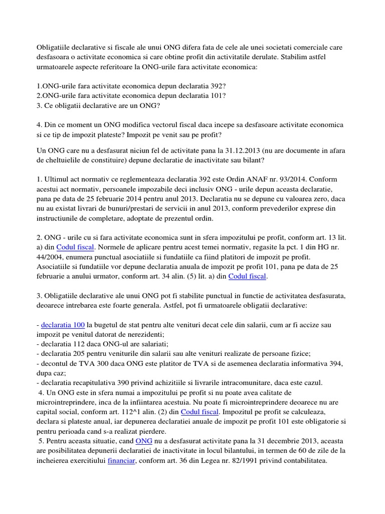 Declaratia 101 Ong Fara Activitate Economica 2018