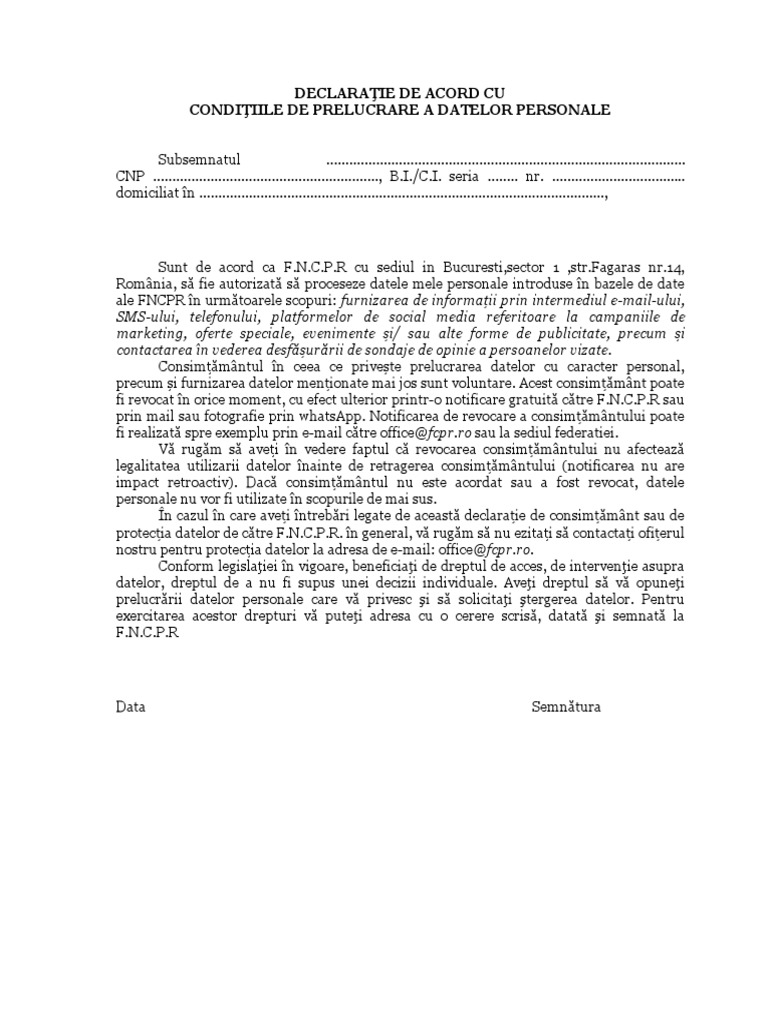 Declaratie Prelucrare Date Gdpr