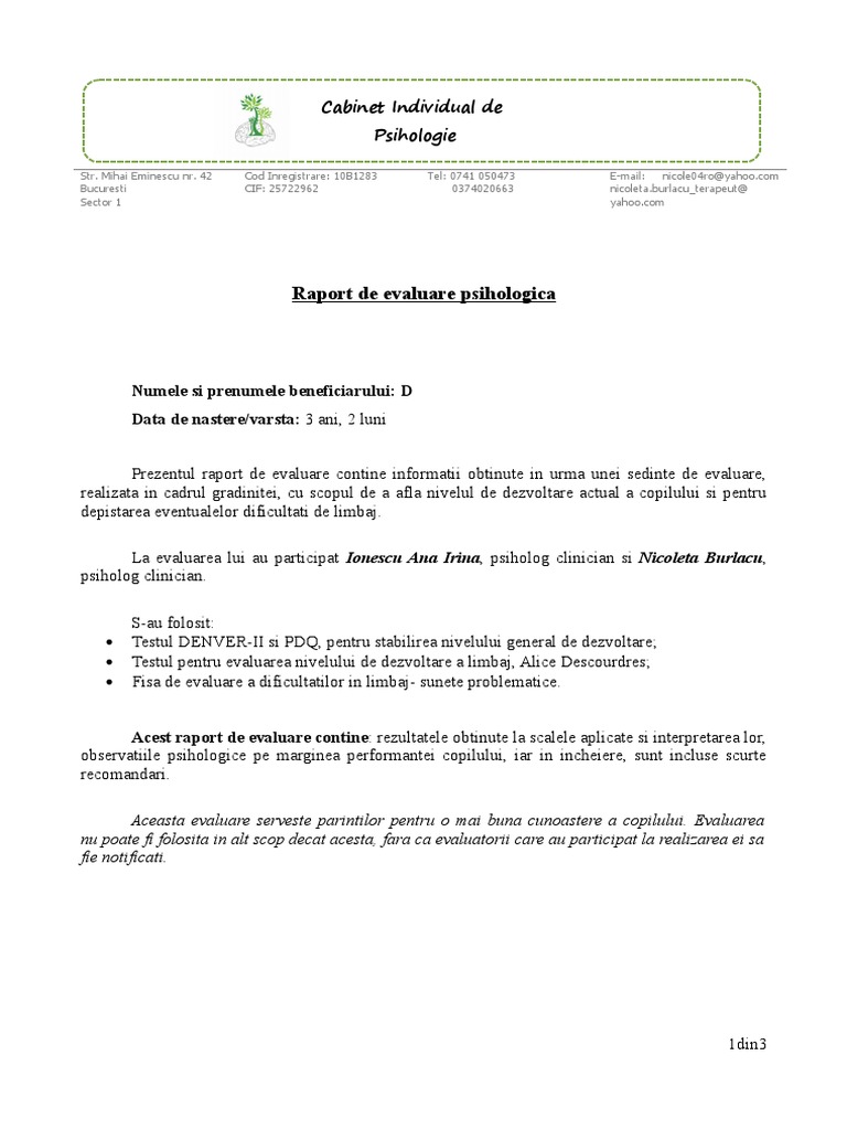 Model Raport Evaluarea Saƒnaƒtaƒa Ii Mintale Ceica