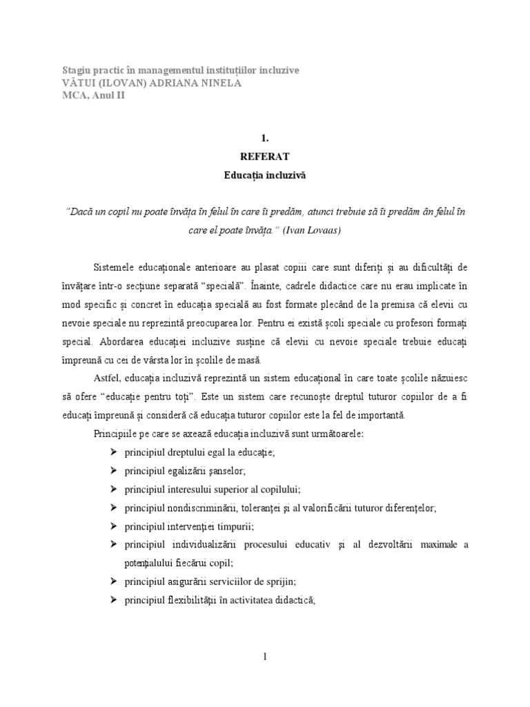 Referat Educatia Incluziva Vatui Ninela