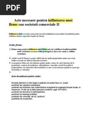 Doc Acte Necesare Pentru Infiintarea Unei Firme Sau Societati Comerciale Madalin Tudorache Academia Edu
