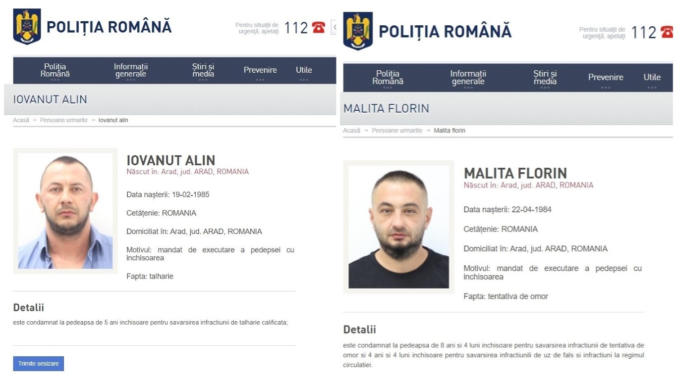 Iovănuț și Malița Pe Lista De Persoane Urmărite A Poliției Romane Aradon