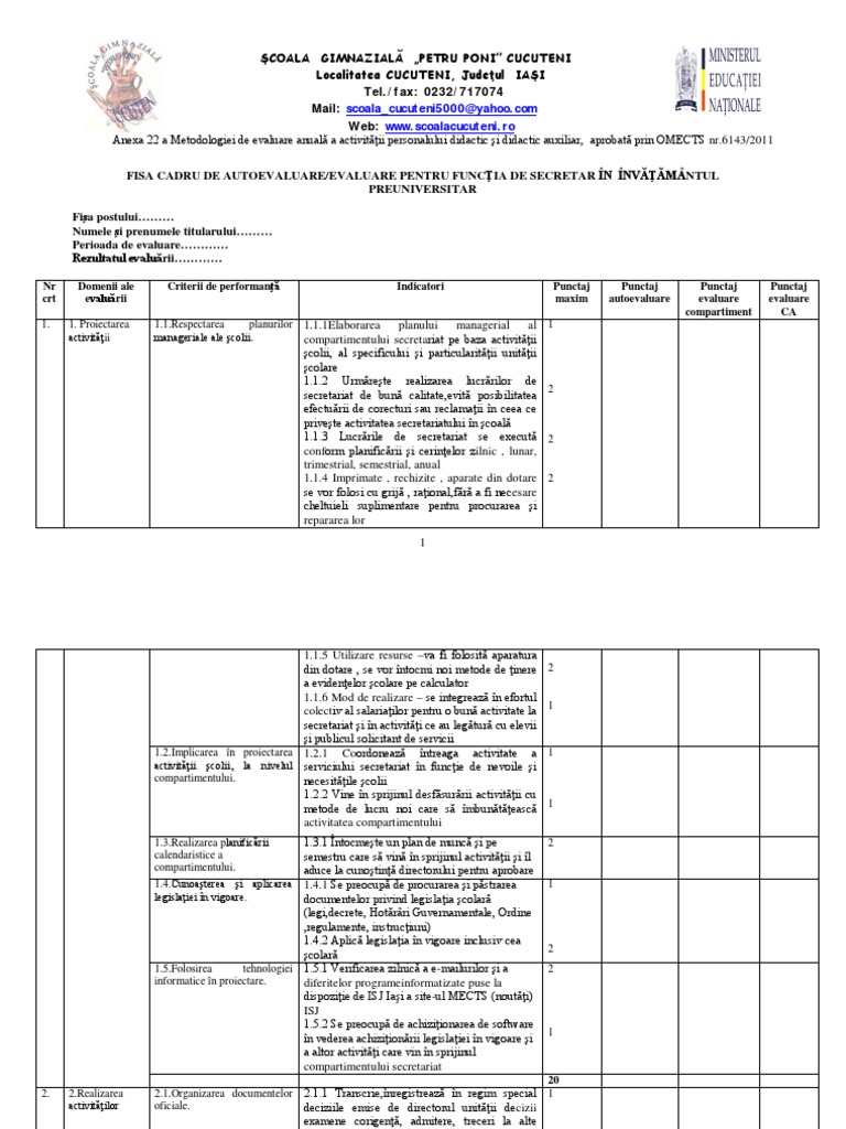 Pdf Anexa 22 A Metodologiei De Evaluare Anuală A Activităţii Personalului Didactic Si Didactic Auxiliar Iulian Alexe Academia Edu