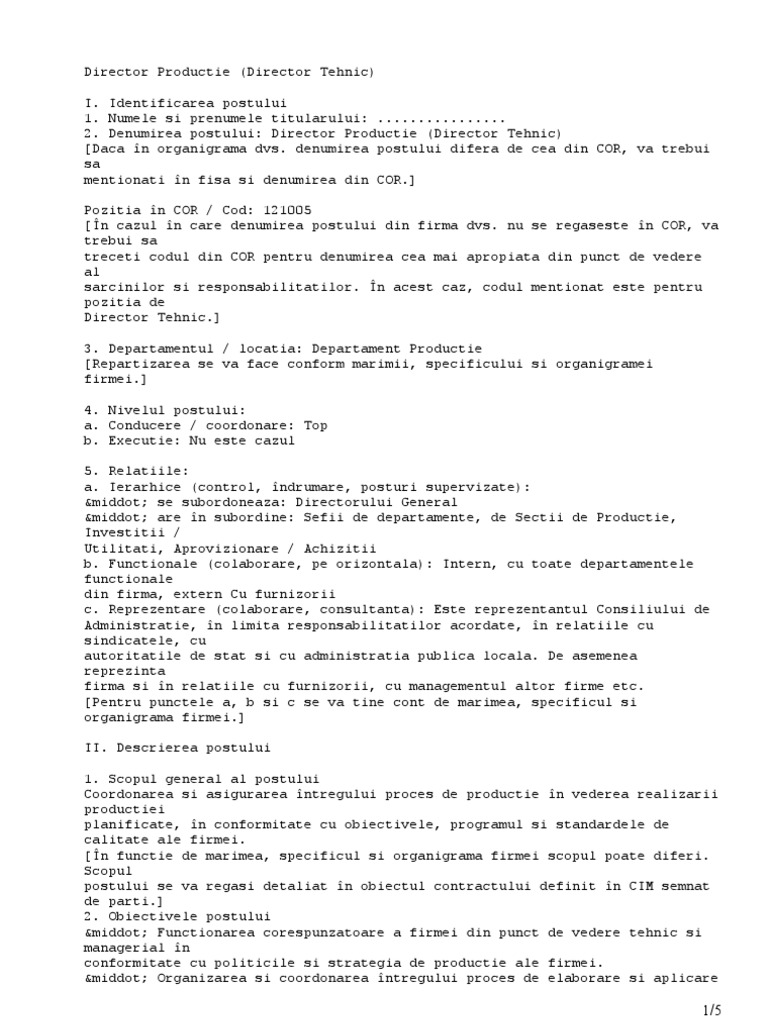 Fișa Postului și Fișă De Evaluare A Performanțelor Individuale Pentru Director Tehnic Cod Cor 112024