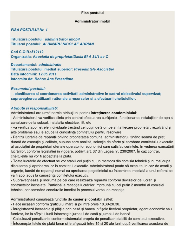 Administrator Imobil Fisa Postului