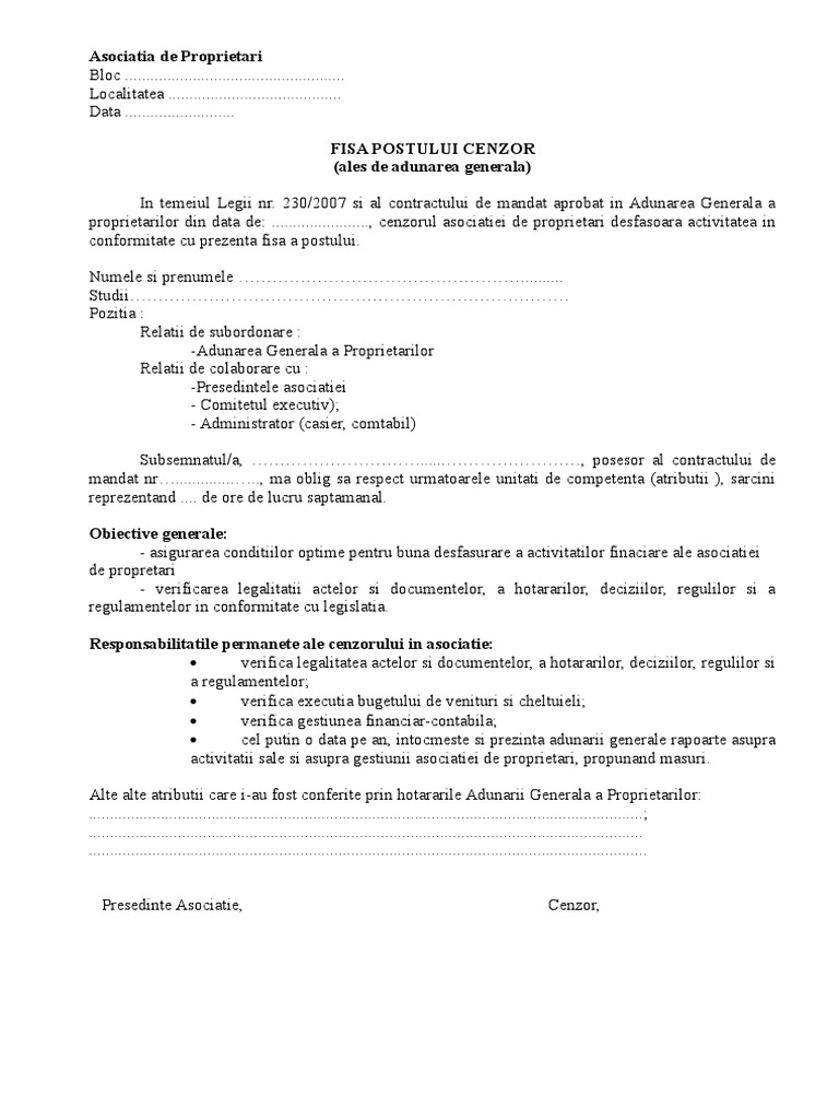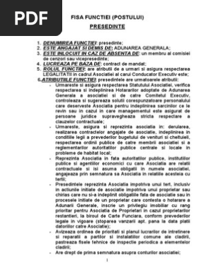 Fisa Postului Presedintelui Asociatie De Proprietari