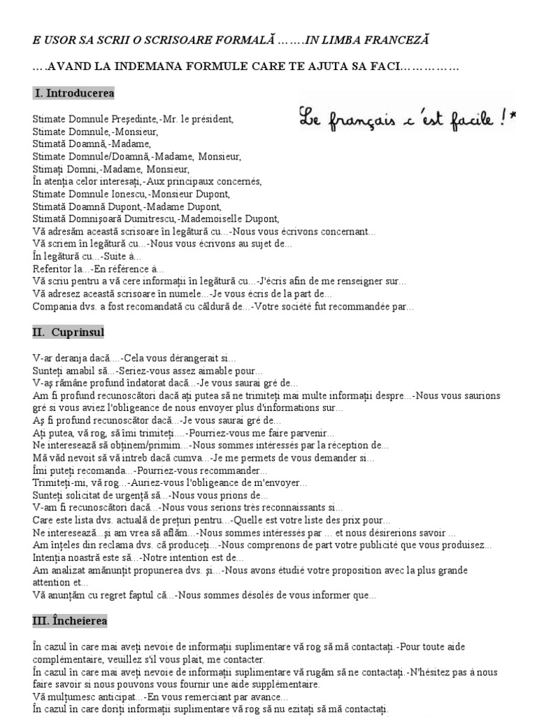 Scrisoare Formala Franceza
