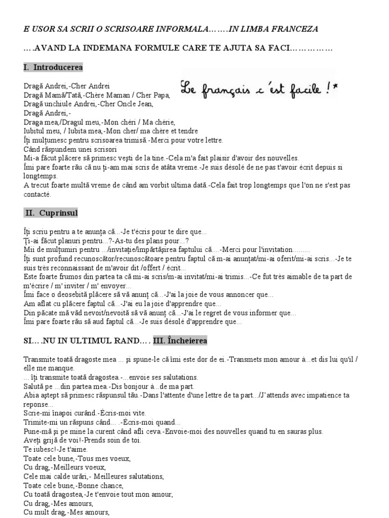 Scrisoare Informala Franceza