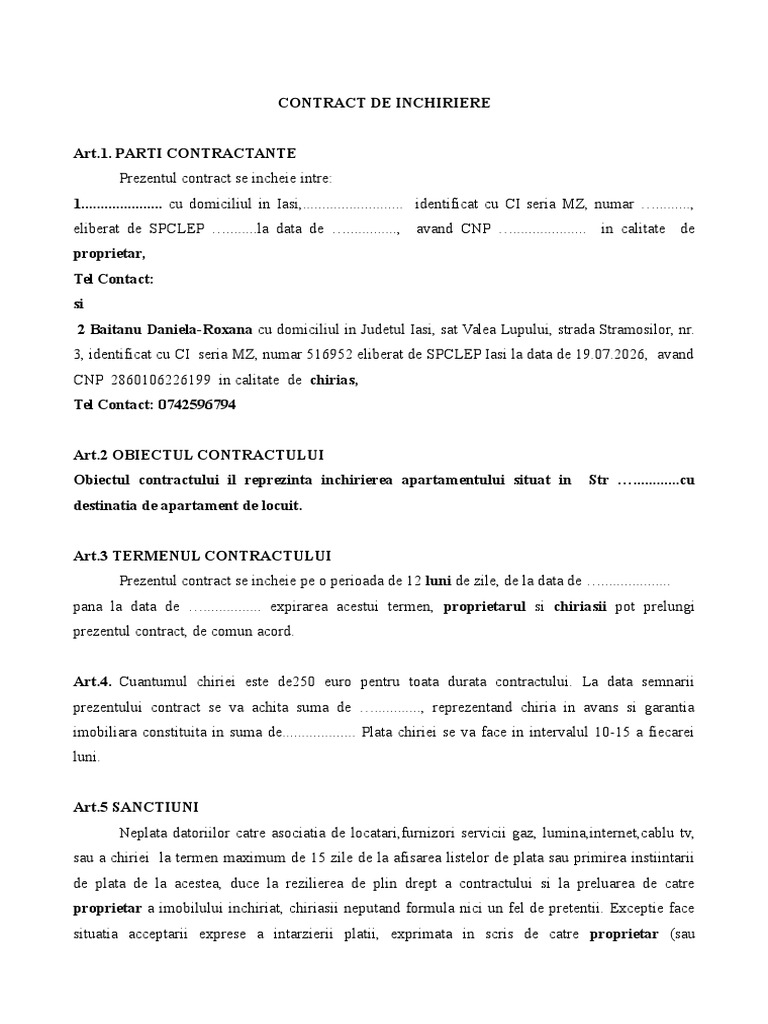 Contract Inchiriere