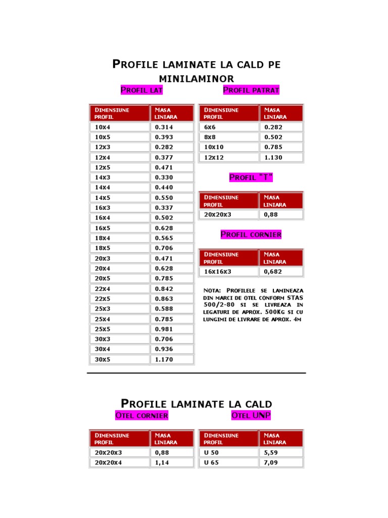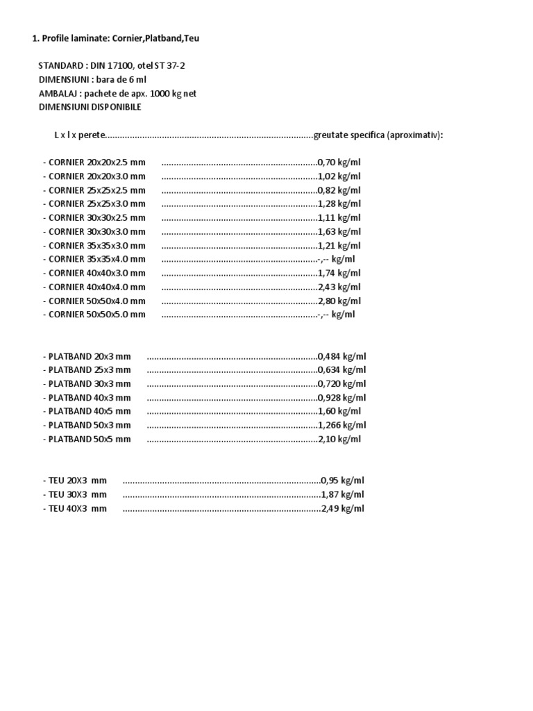 Greutati Specifice Profile Metalworks
