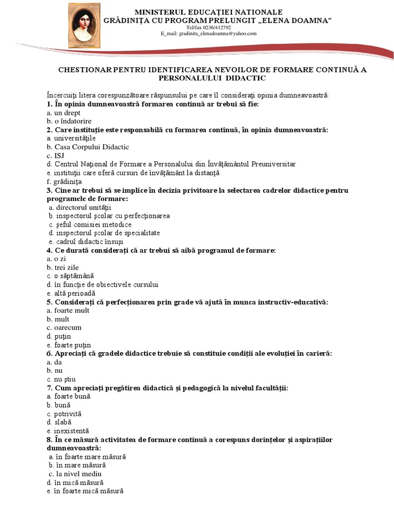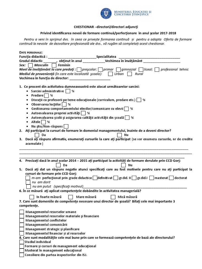 Chestionar Pentru Identificarea Nevoilor De Formare Continua Personalului Didactic 1