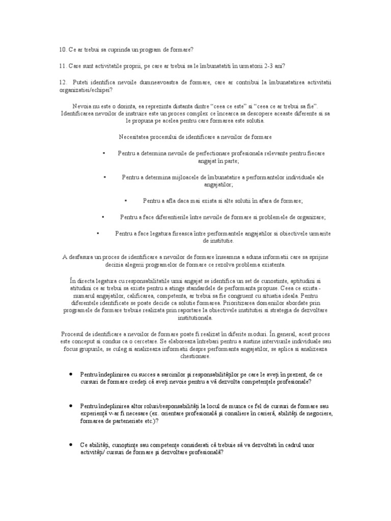 Chestionar Nevoi De Formare Aspecte Legislative