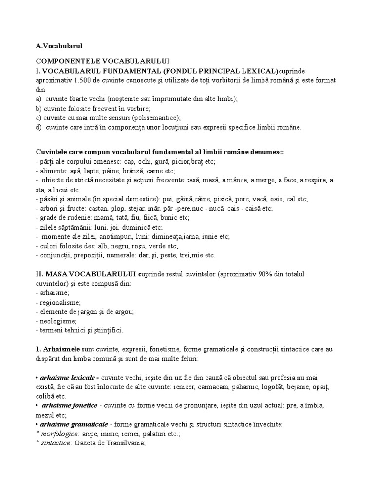 Doc Vocabularul Limbii Romane Iuliana Militaru Academia Edu
