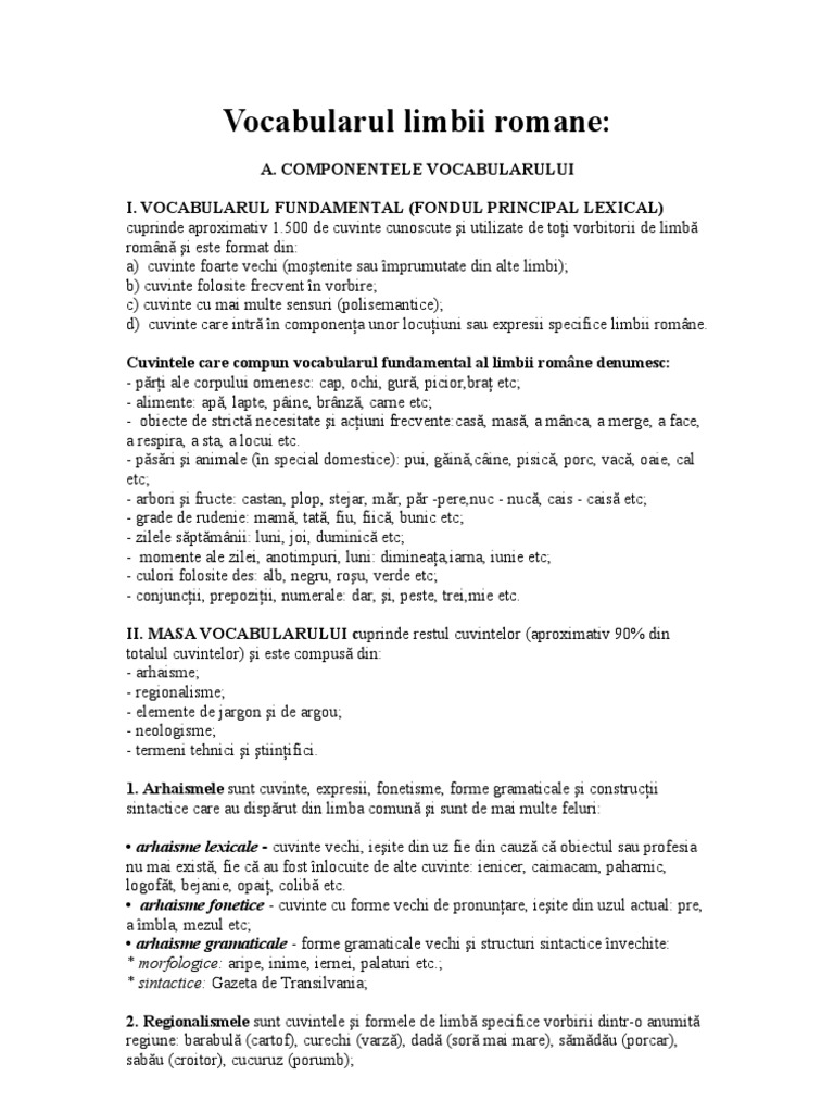 Doc Vocabularul Limbii Romane Alexandra Elena Academia Edu