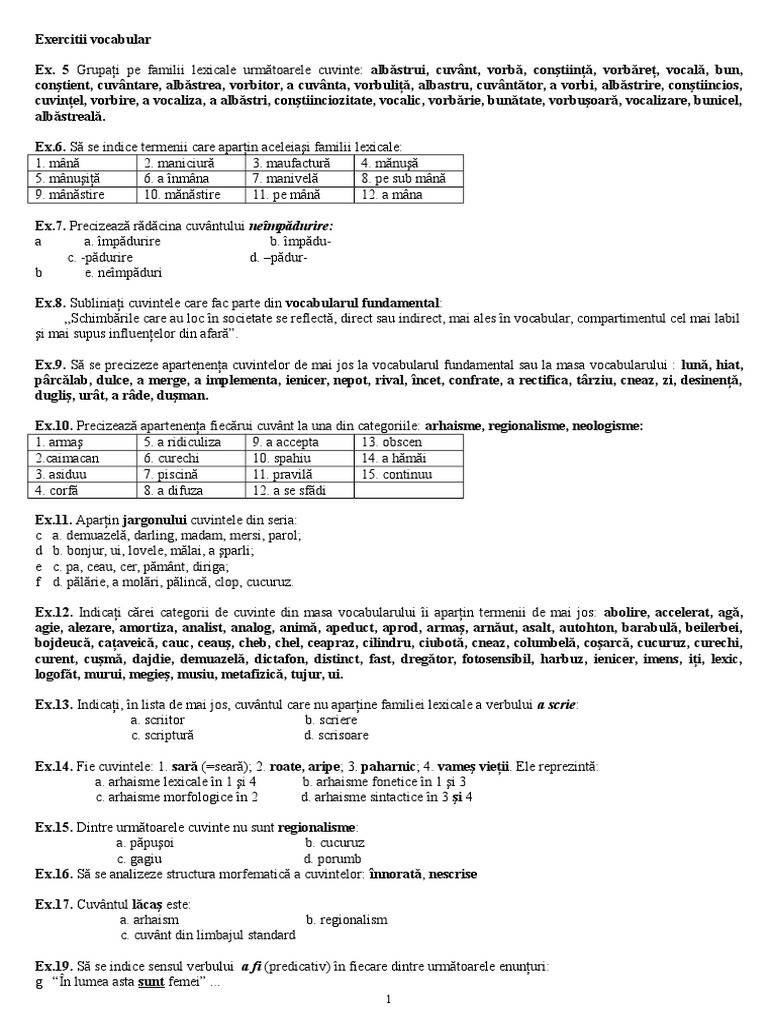 Exercitii Vocabular