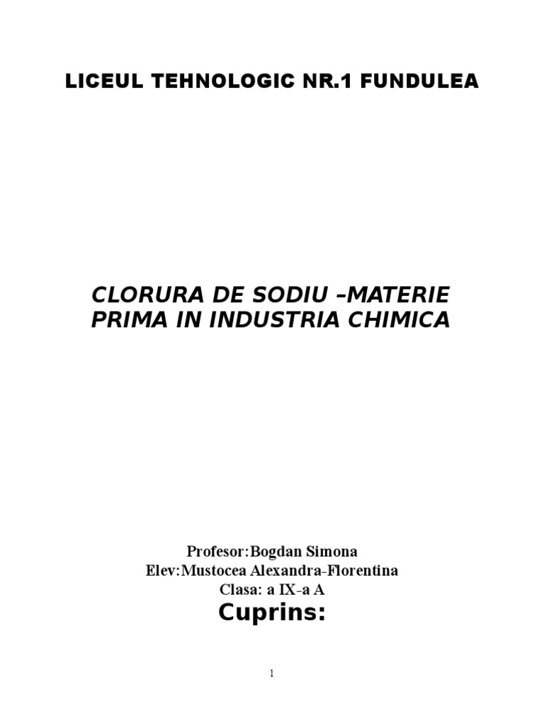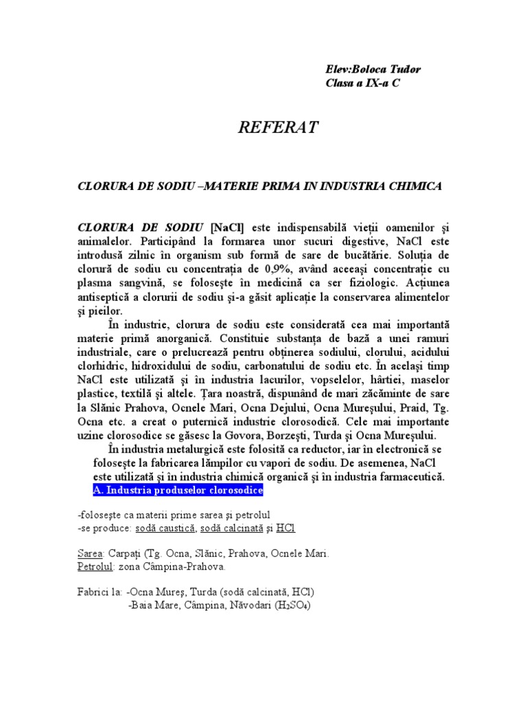 Industria Produselor Clorosodice Si Utilizarea Acestora