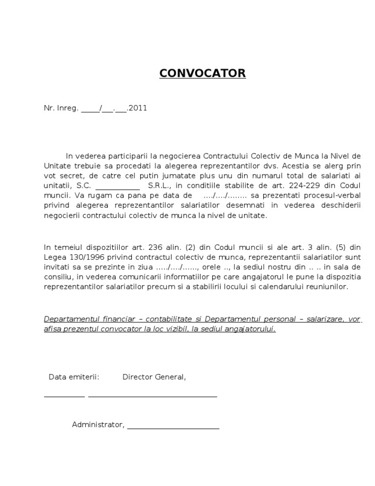 Convocator Pentru Negocierea Contractului Colecti