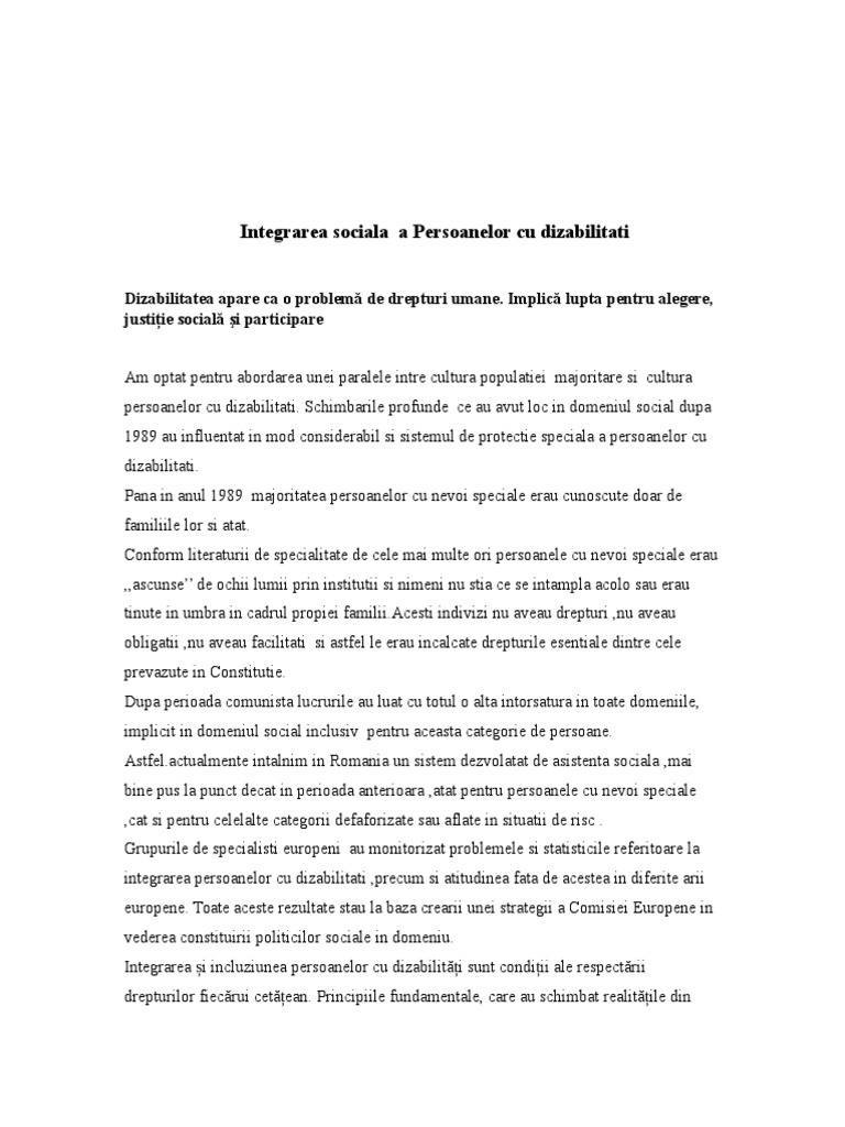 Integrarea Sociala A Persoanelor Cu Dizabilitati Doc