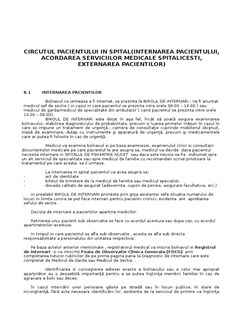 Acte Necesare Pentru Internarea In Spital