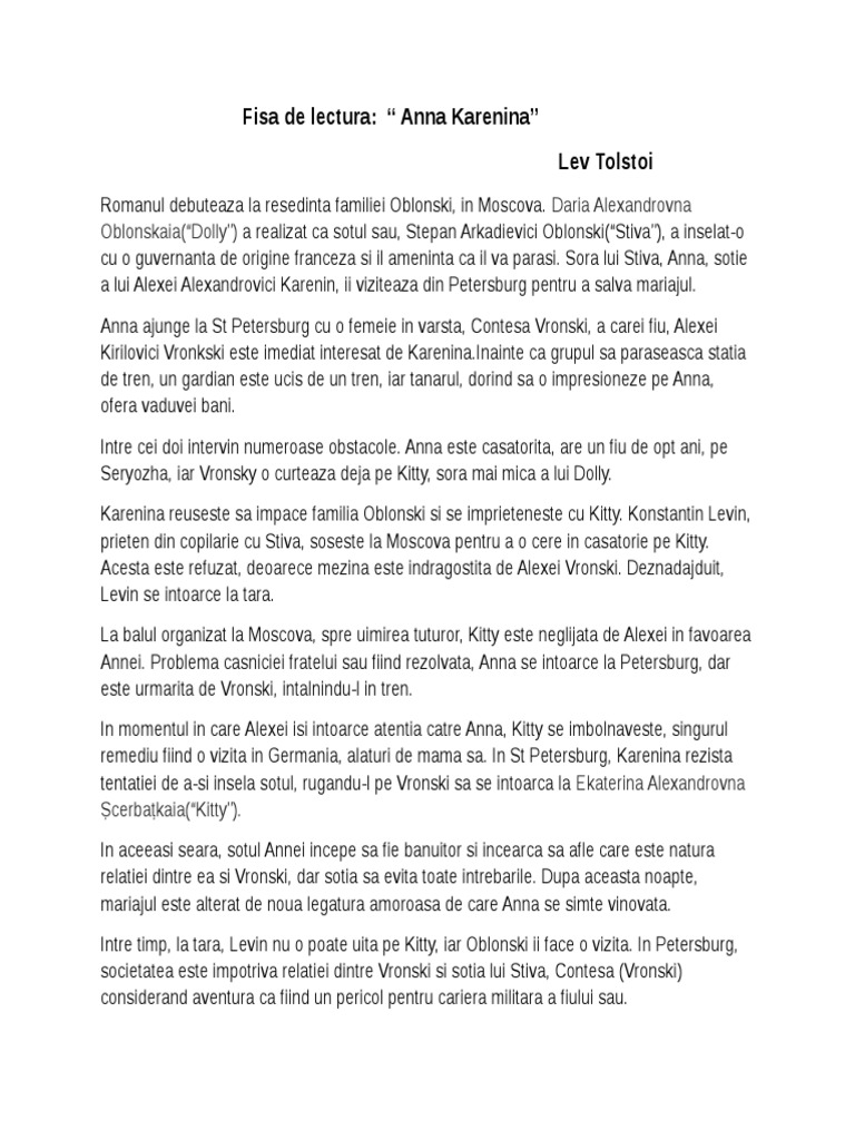 Anna Karenina Rezumat