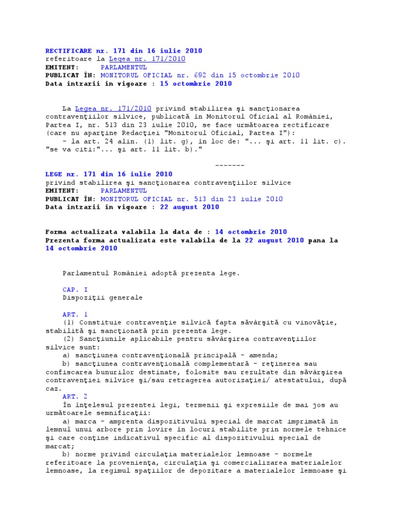 Legea Nr 171 2010 Privind Stabilirea și Sancționarea Contravențiilor Silvice Actualizată 2020 Lege5 Ro
