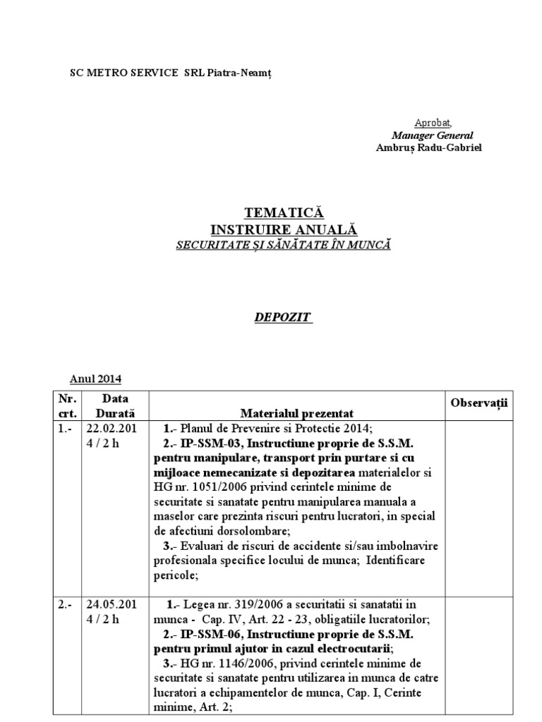 Tematica Privind Respectarea Prevederile Legii Nr 319 2006 Referitor