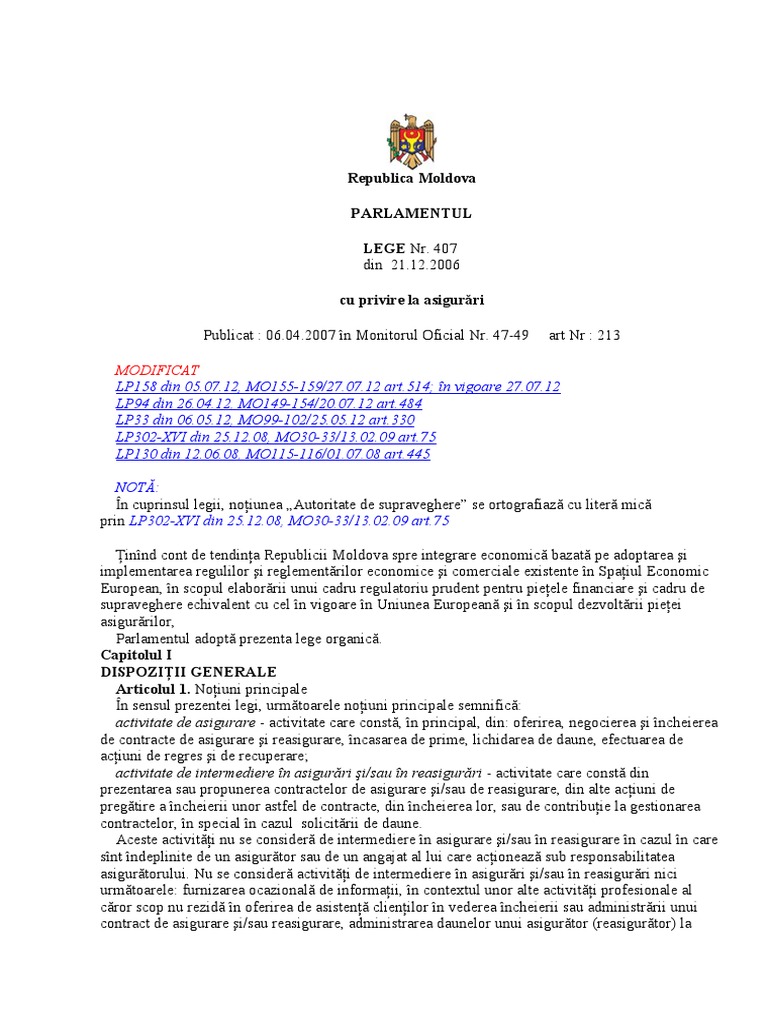 Republica Moldova Parlamentul Lege Nr 407 Modificat