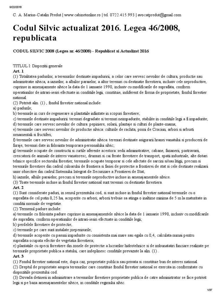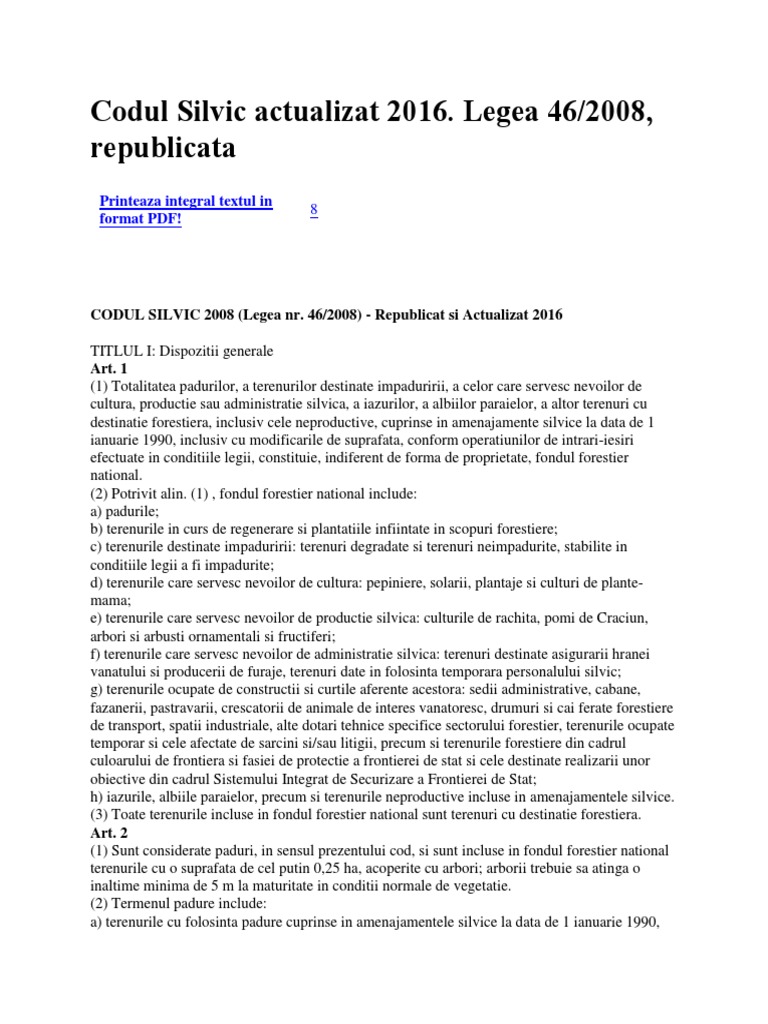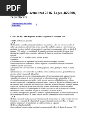 Codul Silvic Actualizat 2016 Legea 46din 2008 Republicata