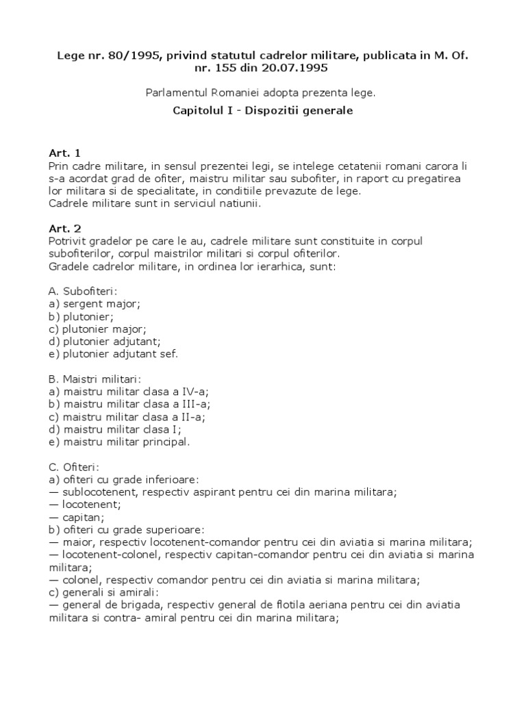 Legea 80 1995 Privind Statutul Cadrelor Militare