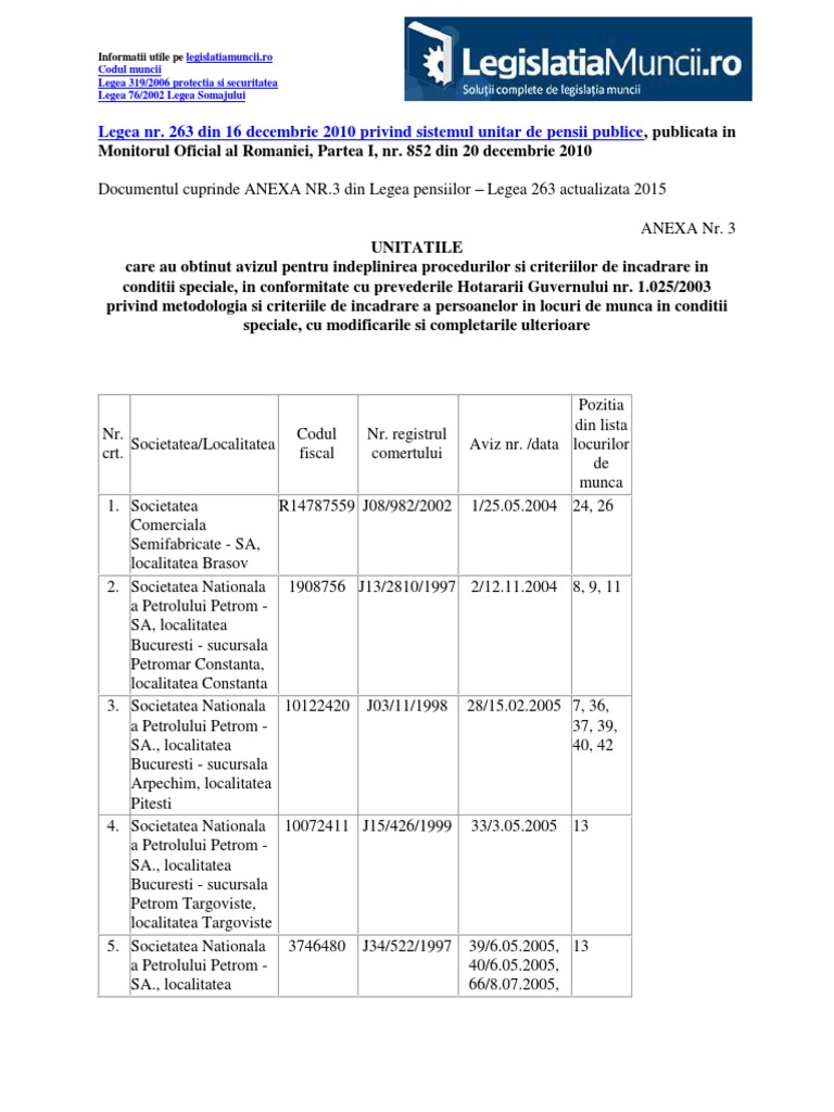 Anexa 3 Legea Pensiilor Legea 263