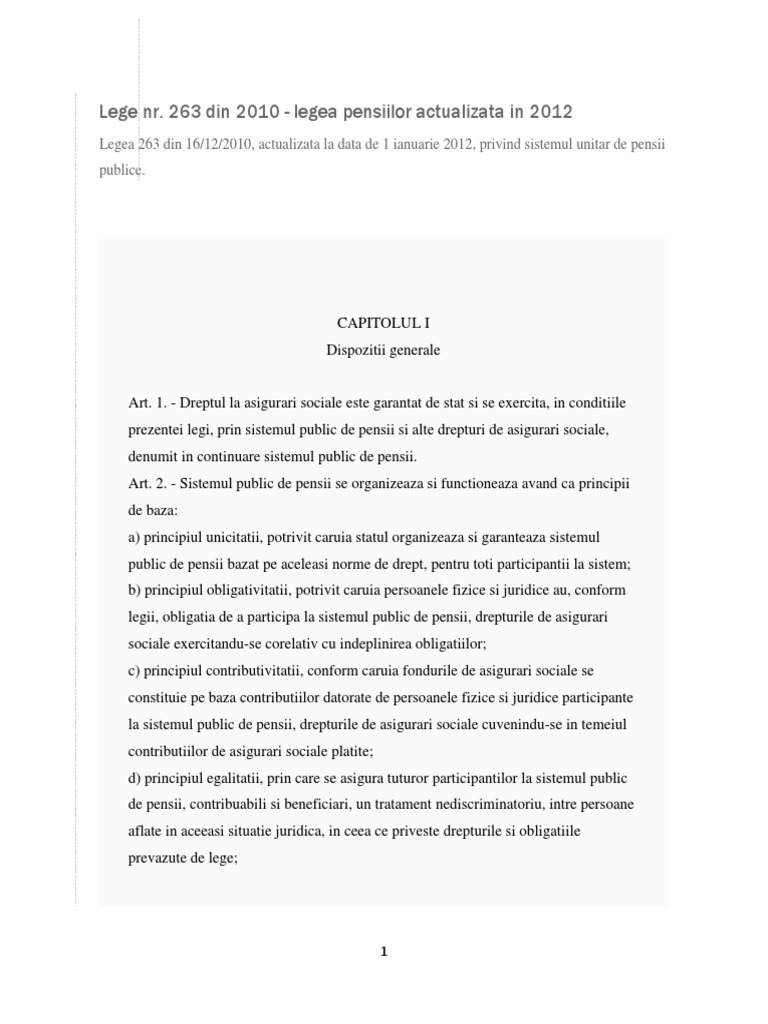 Legea Pensiilor 263 Din 2010