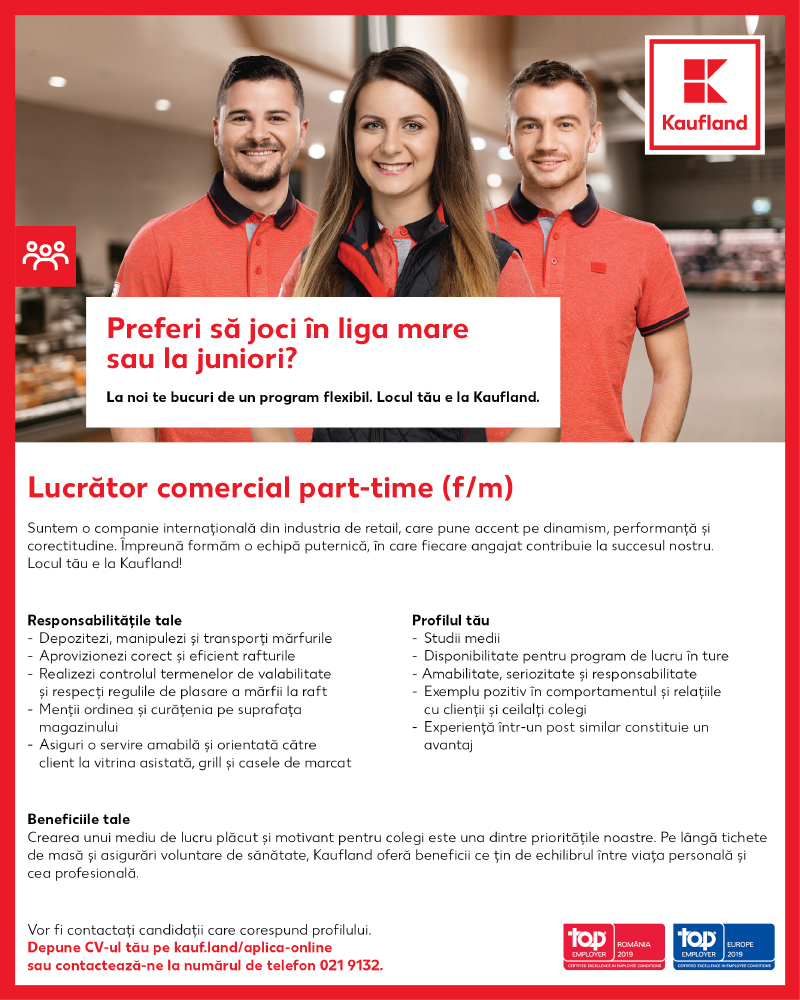 Lucrător Comercial Part Time Campina F M Kaufland Romania Aplica Pe Ejobs