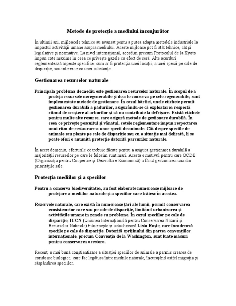 Metode De Protectie A Mediului Inconjurator